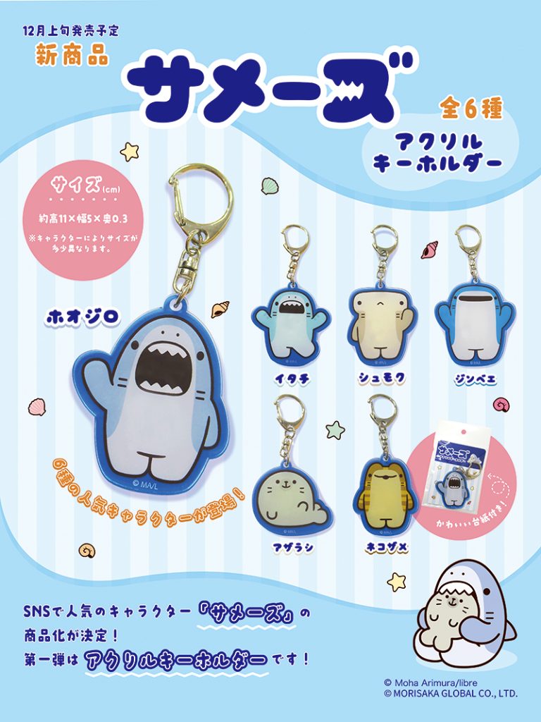 2025年12月12日 新商品のお知らせ! 12月上旬より発売中。 SNSで人気のキャラクター「サメーズ」の商品化が決定しました! まず第一弾はアクリルキーホルダーです! 6種の人気キャラクターが登場いたします! 共有:FacebookTwitterPinterestPocket ← もちらすかる しっぽマスコット・しっぽクッション